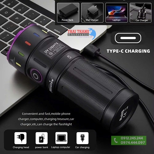 Đèn pin cực tím UV Terino D6000 Được trang bị 6 chip led UV lõi tứ có bước sóng 365nm, cho công suất tối đa đến 120W,phù hợp cho các công việc như kiểm tra mực ẩn,giấy tờ tiền giả, tem rượu, đồ cổ, đá quý, làm khô nhanh các loại keo dán công nghiệp, phát hiện chất thải động vật, các loại côn trùng độc, chất huỳnh quang có trong sữa, mỹ phẩm, tã giấy,diệt khuẩn, kiểm tra vết bẩn mà mắt thường không thể nhìn thấy,….