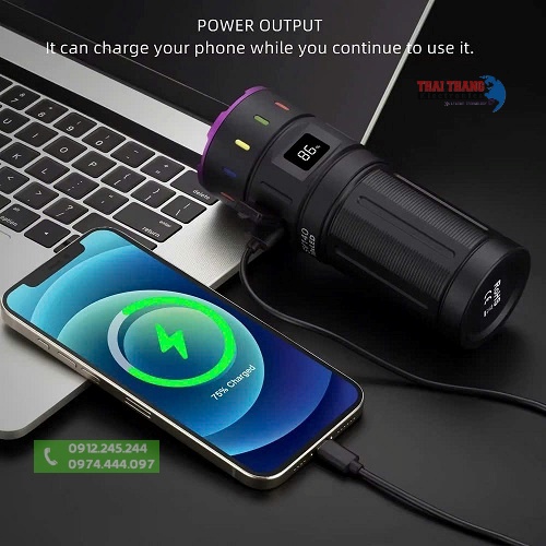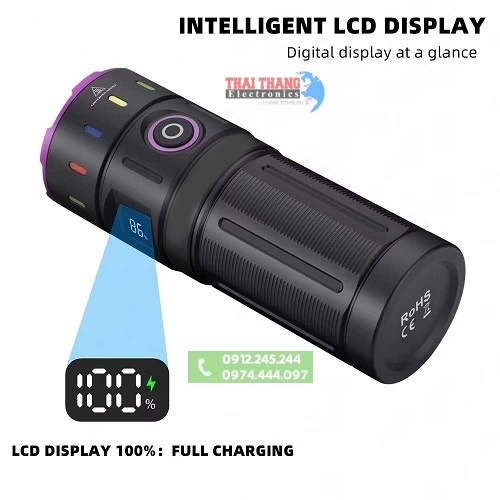 Đèn pin uv 365nm Winning ligt UV1980 Sử dụng nguồn 4 pin sạc 18650 cho thời gian hoạt động lâu dài,kết hợp màn hình thông minh hiển thị trực quan, báo dung lượng pin,công suất,giúp người dùng chủ động theo dõi trong quá trình sử dụng.