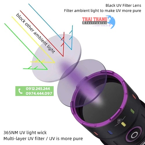 • Ánh sáng UV 365nm gần như vô hình với mắt thường