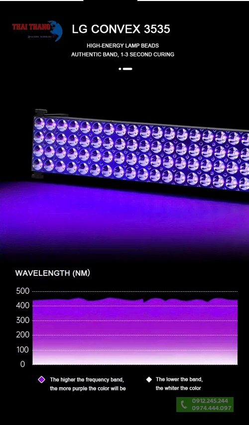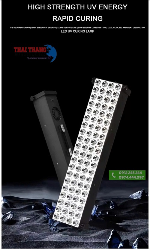 Đèn UV công suất cao Winning light D405 Nguồn sáng lạnh,nhiệt độ bề mặt của vật thể được chiếu sáng tăng chậm,giải quyết vấn đề tỏa nhiệt cao làm ảnh hưởng đến bề mặt trang thiết bị,đồ dùng,tiêu thụ năng lượng thấp,công suất đạt 200w cho bước sóng uv 405nm,cường độ chiếu xạ 2700 mW/cm²,góc chiếu rộng 120 độ tăng hiệu quả quét bao phủ bề mặt,đặc biệt hiệu quả làm nhanh khô keo,sơn trong sản xuất,sửa ... |