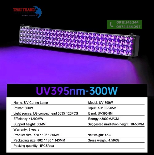 Đèn sấy UV 300W Winning Light D7800 Bước Sóng 395nm Công Nghiệp