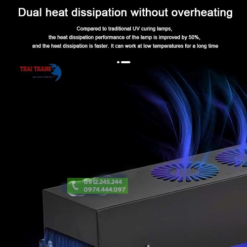 Đèn UV công nghiệp Sử dụng nguồn trực tiếp AC 100 đến 265v thuận tiện sử dụng trong thời gian dài,thiết kế 120 bóng dạng cầu lồi 3535,hiệu ứng ánh sáng 3000W giúp chùm sáng tỏa rộng trên bề mặt vật liệu,thân vỏ sử dụng vật liệu hợp kim nhôm cho trọng lượng nhẹ,trang bị quạt tản nhiệt giúp thiết bị hoạt động trong thời gian dài không lo quá nhiệt,dễ dàng bảo quản khi sử dụng.