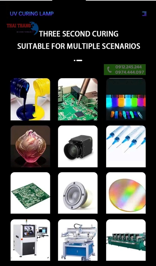 - Giúp đóng rắn nhanh keo UV, mực UV, resin, sơn phủ trong thời gian cực ngắn.