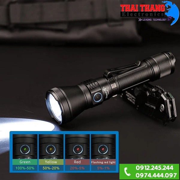 - Chế độ siêu sáng (1800 LM): Cung cấp sức mạnh tối đa để tìm kiếm tầm xa hoặc trong tình huống khẩn cấp, hoạt động liên tục trong 189 phút.