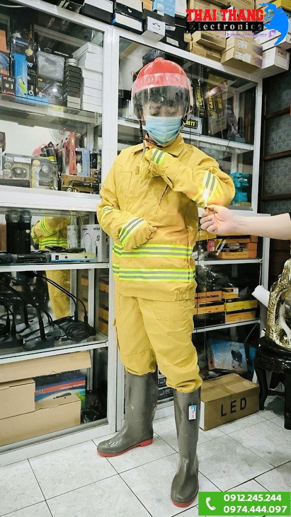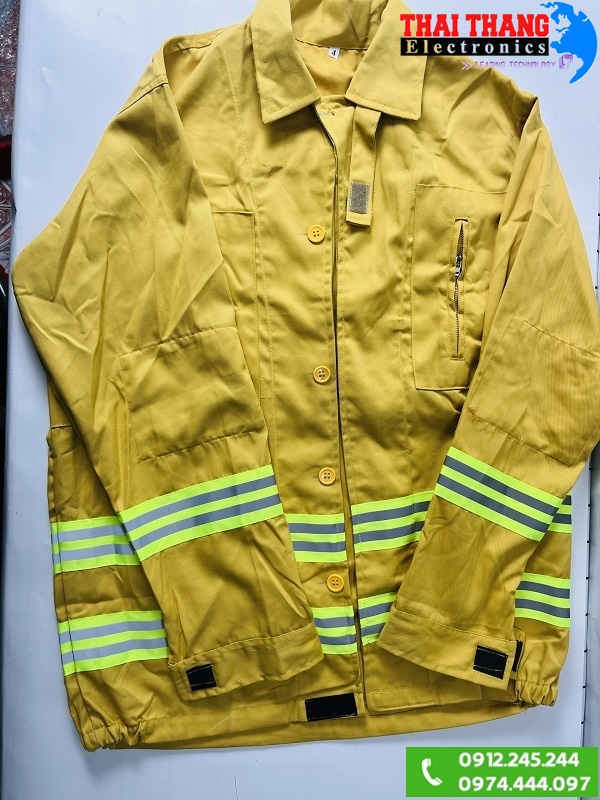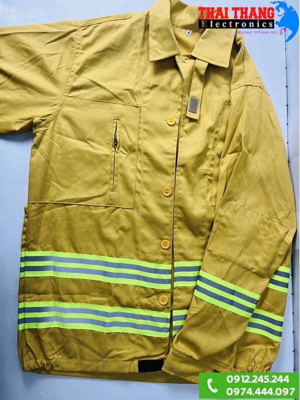 Quần áo chữa cháy theo thông tư 48 sử dụng chất liệu Polyester và cotton (65/35± 3%) có khả năng chịu nhiệt cao, quần áo thiết kế màu vàng đặc trực cho lực lượng PCCC.