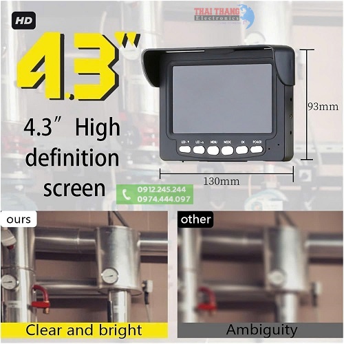 Hình ảnh được truyền trực tiếp về màn hình màu TFT 4.3 inch ( 480x272 ), được trang bị tấm chống hắt sáng,sử dụng hiệu quả ngay cả ngoài trời, khu vực ánh sáng cao mà vẫn đảm bảo quan sát rõ nét hình ảnh.Các phím chức năng đặt tại vị trí thuận tiện dễ thao tác, giúp người dùng dễ dàng vận hành,quan sát rõ tình trạng hư hại bên trong đường ống như: