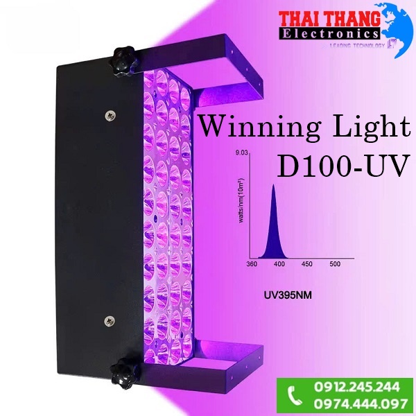 Đèn UV công suất cao Winning light D100 Nguồn sáng lạnh,nhiệt độ bề mặt của vật thể được chiếu sáng tăng chậm,giải quyết vấn đề tỏa nhiệt cao làm ảnh hưởng đến bề mặt trang thiết bị,đồ dùng,tiêu thụ năng lượng thấp,công suất đạt 100w cho bước sóng uv 395nm,cường độ chiếu xạ 1200 mW/cm²,góc chiếu rộng 120 độ tăng hiệu quả quét bao phủ bề mặt,đặc biệt hiệu quả làm nhanh khô keo,sơn trong sản xuất,sửa chữa lắp ráp,.v.v.. 🕹️ Dễ dàng lắp đặt cho nhiều loại máy: 1325, 2513, 2030, 1513, 1612, 3220…⸻