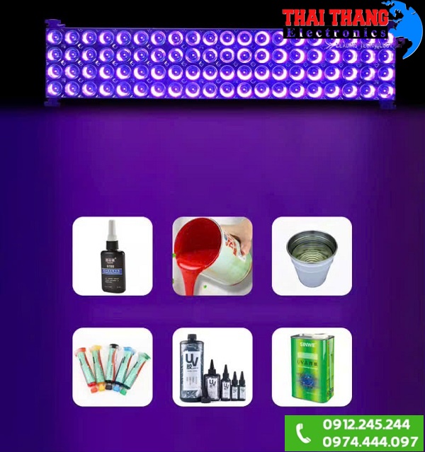 - Thiết bị UV trong ngành điện tử: sấy keo UV điện tử, keo không bóng, sơn UV cho linh kiện.