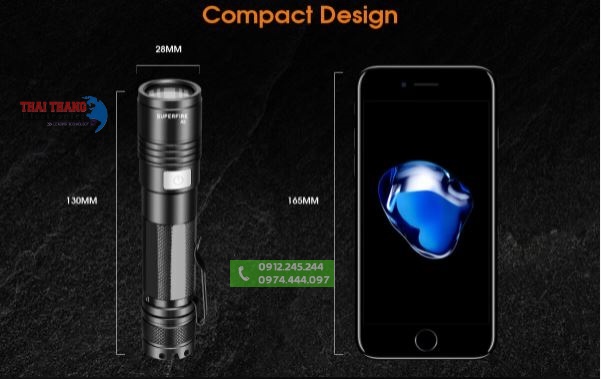 Đèn pin uv soi keo Superfire A5 Sử dụng guồn là pin 18650 dung lượng cao cho thời gian chiếu sáng 1-2h,thân vỏ chất liệu hợp kim nhôm Al6061-T6 trọng lượng siêu nhẹ, độ bền cao chống chịu va đập tốt.
