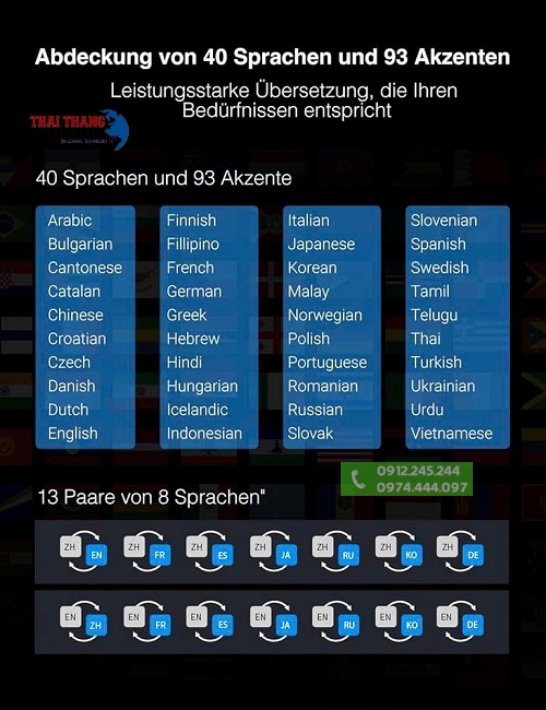 - Khả Năng Phiên Dịch Mạnh Mẽ – Hỗ Trợ 43 Ngôn Ngữ & 93 Âm Điệu
