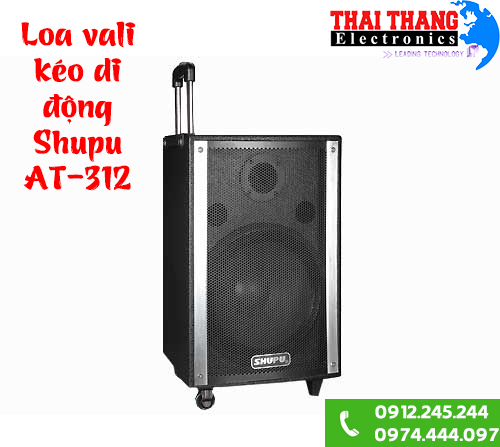 Loa kéo di động Shupu AT-312 với công suất cao lên đến 500w, đường kính màng loa rộng âm thanh phân bố đều trên khắp loa cho phép người dùng thoải mái sử dụng ở những nơi rộng lớn, loa có thể hỗ trợ mic có dây hoặc không dây cho người dùng thoải mái di chuyển với bán kính rộng, người dùng cũng có thể sử dụng thẻ nhớ hoặc USB để phát những list âm thanh, những ca khúc karaoke hay những đoạn âm thanh PR được ghi âm sẵn. Loa di động sử dụng nguồn là pin tích hợp sẵn bên trong, thời gian sử dụng sau mỗi lần sạc là 6 đến 8 tiếng