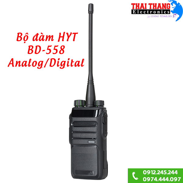 Hytera BD-558 cung cấp 256 kênh với dãi tần VHFvà UHF sử dụng cho nhà cao tầng và mặt bằng, chuyển đổi linh hoạt giữa 2 chế độ analog và kỹ thuật số. Công suất hoạt động đến 5W cho âm thanh to rõ, không bị rè nhiễu ngay cả khi sử dụng trong môi trường khắc nghiệt có nhiều tiếng ồn. Phạm vi hoạt động ở điều kiện lý tưởng từ 3-5Km. Thiết kế mỏng, gọn nhẹ độ bền cao máy có thể rơi từ độ cao 1,5m. Máy sử dụng nguồn là pin Li-ion công suất 2000mAh cho thời gian sử dụng lên đến hơn 16h ở chế độ analog và 22h khi ở chế độ kỹ thuật số, công nghệ tiết kiệm pin cũng được áp dụng trên bộ đàm, có đèn báo cường độ pin trên máy.
