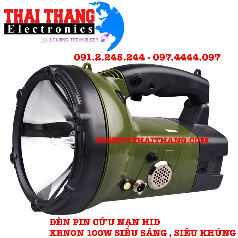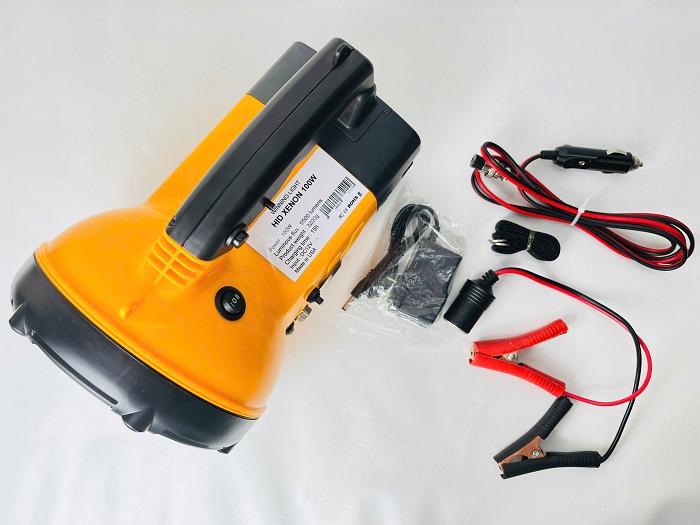Đèn pin cầm tay siêu sáng Xenon HID 100W sử dụng bóng Xenon hoàn toàn mới, công suất hoạt động 100W mang lại cường độ sáng lên đến 9500 lumens. Đèn sử dụng chóa lớn, nhẵn và sâu giúp ánh sáng tỏa ra rộng đồng thời cho khoảng cách chiếu xa lên đến 3000m trong điều kiện tiêu chuẫn. Đèn sử dụng nguồn là acqui 12V dung lượng 5.5Ah cho đèn hoạt động với thời gian 50 phút liên tục, ngoài ra khả năng chống nước của đèn cũng đạt chuẩn chống nước IPX8 cho phép đèn hoạt động được trong điều kiện thời tiết khắc nghiệt.