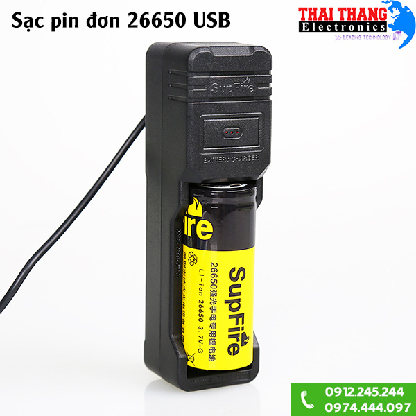 Quy cách đóng gói: 1x Sạc đơn 26650 cắm dây USB