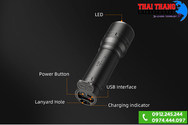 - Sạc trực tiếp trên thân đèn