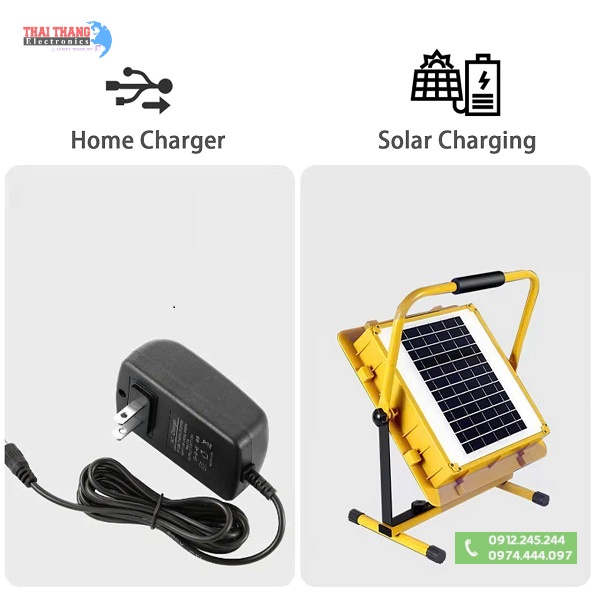 Sử dụng pin sạc dung lượng cao 50.000mAh cho thời gian chiếu sáng 15h ở chế độ sáng mạnh,50h ở chế độ sáng yếu,trang bị cáp sạc AC trực tiếp và đồng thời trang bị tấm sạc năng lượng mặt trời giúp người dùng linh hoạt trong quá trình sạc và sử dụng.