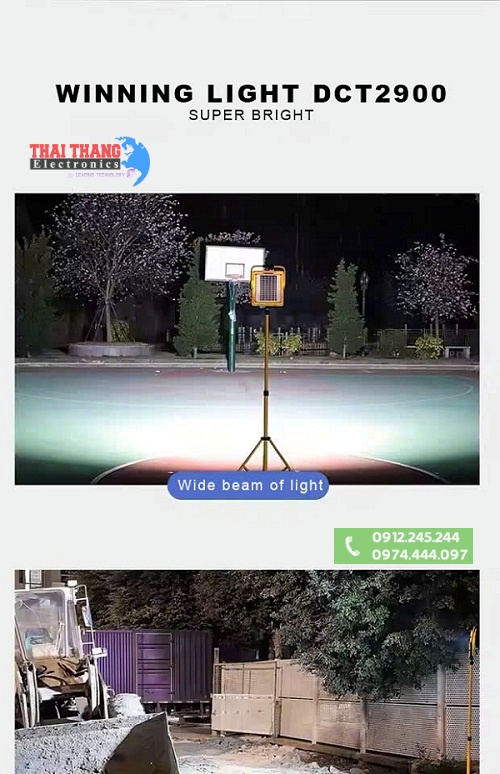 Đèn công trường năng lượng mặt trời Winning Light DCT2900 600W Sở hữu công suất mạnh mẽ 600W nhờ vào 384 LED (SMD – Phillips) siêu sáng, tạo ra một luồng ánh sáng đồng đều và mạnh mẽ, dễ dàng bao phủ một khu vực rộng lớn,giúp tối ưu hóa hiệu quả làm việc ban đêm.