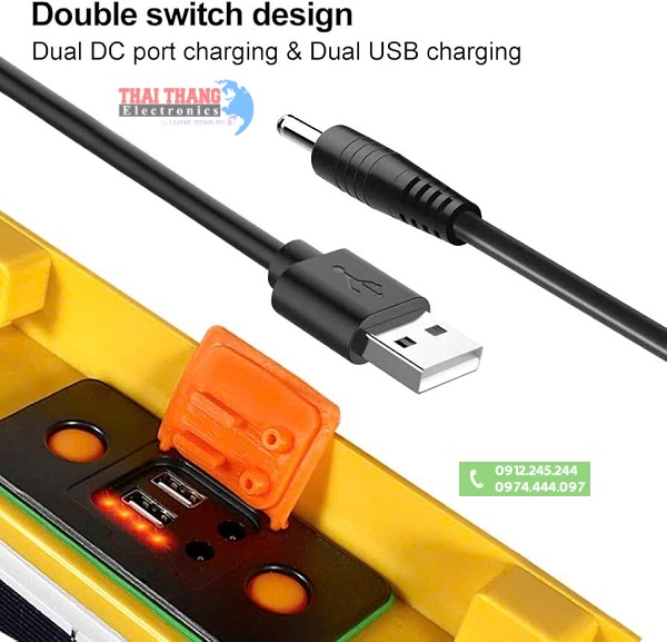 • Hỗ trợ 2 cổng USB – sạc cho các thiết bị di động,sạc được điện thoại, máy đo, thiết bị cầm tay dụng trong công việc hoặc khi du lịch dã ngoại ngoài trời.