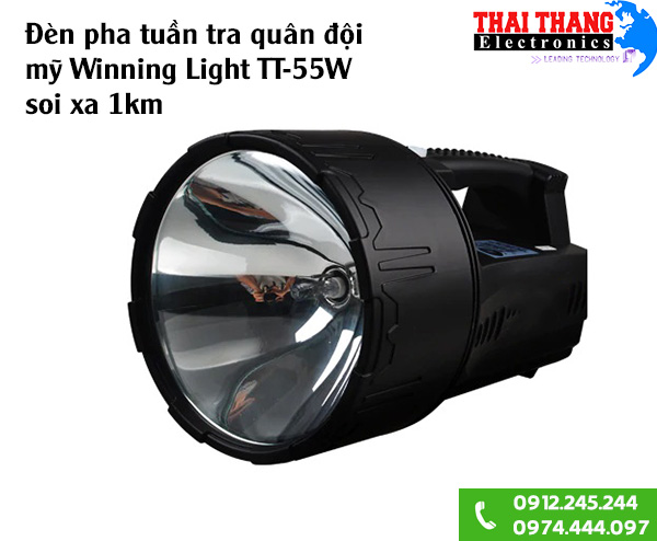 Đèn pha quân đội siêu xa Winning TT-55W thuộc dòng sản phẩm đèn xách tay siêu sáng, chất lượng cao, gọn nhẹ. Sản phảm đạt tiêu chuẩn để lưu hành trong lực lượng quân đội các nước Châu Âu.