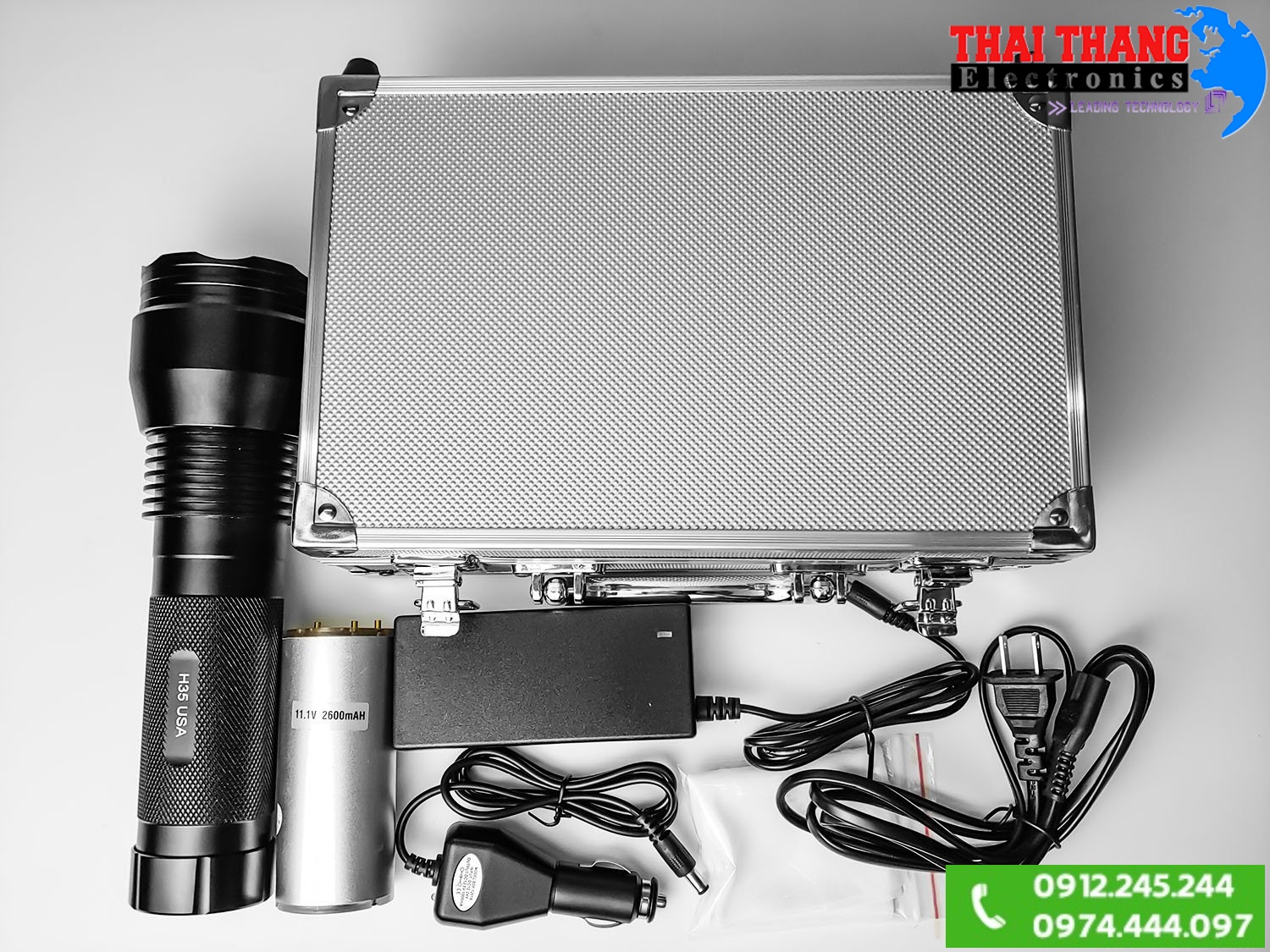 - Bao gồm: thân đèn, móc đeo, pin 18650, sạc 220v, socket pin aaa.