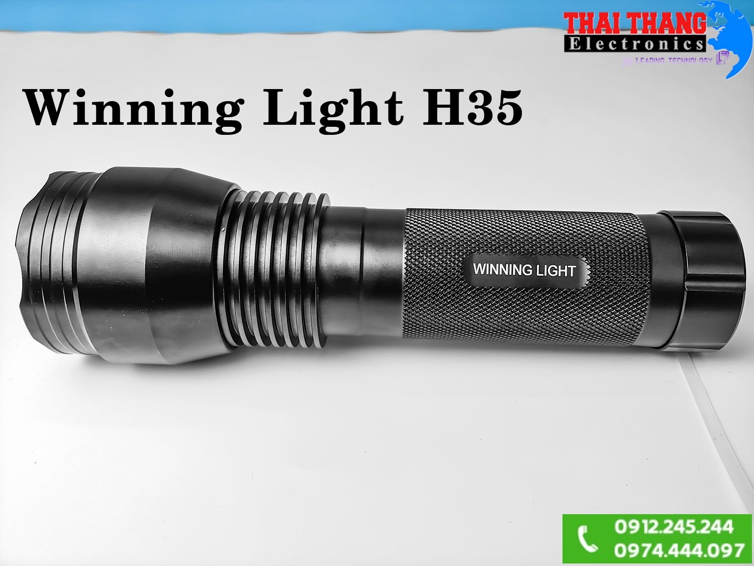 Đèn pin siêu sáng Winning Light H35 trang bị bóng Xenon HID công suất lên đến 35W, dãi nhiệt màu 6000K, cho cường độ sáng lên đến 35000lumens. Chóa đèn có chất liệu nhôm, thiết kế sâu và được tráng bạc 3 lớp giúp phản xạ ánh sáng tốt, đồng thời kết hợp với phần kính bảo vệ chất liệu thạch anh truyền sáng cao cho khoảng cách soi của đèn từ 1-2Km tùy vào điều kiện thời tiết. Đèn sử dụng chất liệu hợp kim nhôm hàng không 6061-T6 giúp đèn có trọng lượng nhẹ, độ bền cao, chịu được các tác động như va đập, rơi rớt, oxy hóa. Đầu đèn được tiện CNC các rãnh tản nhiệt giúp đèn có thể hoạt động trong thời gian dài mà không bị quá nhiệt, thân đèn cũng được tiện các đường rãnh dễ cầm nắm, không bị trơn trượt khi sử dụng. Đèn đạt chuẩn chống nước IPX3 giúp đèn có thể hoạt động tốt trong điều kiện mưa gió.