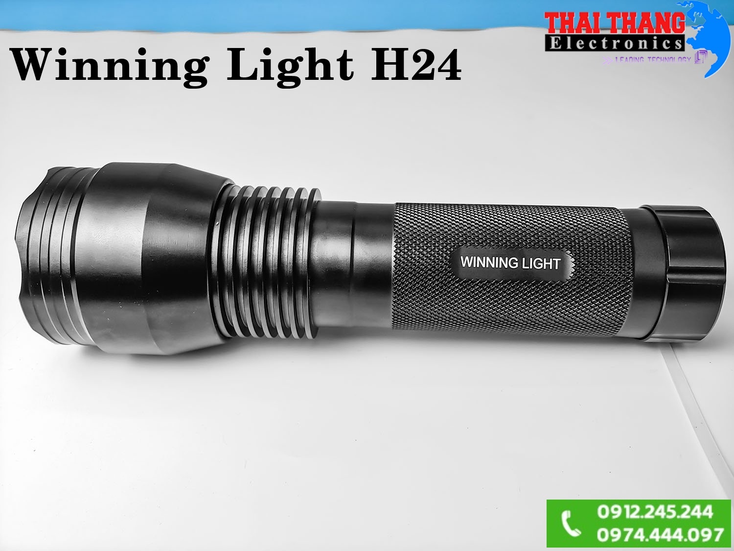 Đèn cầm tay siêu sáng Winning Light H24 sử dụng nguồn sáng là bóng Xenon HID ánh sáng trắng, dãy nhiệt màu 6000K, công suất 24W cho cường độ sáng lên đến 2100lumens. Thiết kế chóa đèn thông minh bằng việc sử dụng chất liệu nhôm tráng phủ 3 lớp bạc giúp phản xạ ánh sáng tốt kết hợp với kính bảo vệ chất liệu thạch anh truyền ánh sáng cao cho khoảng cách chiếu của đèn từ 800 đến 1000m tùy vào điều kiện thời tiết. Thân đèn sử dụng chất liệu hợp kim nhôm hàng không 6061-T6 trọng lượng nhẹ, có thể chịu các tác động như va đập, rơi rớt, oxy hóa. Đầu đèn được tiện CNC các rãnh tản nhiệt giúp đèn có thể hoạt động trong thời gian dài mà không bị nóng, thân đèn cũng tiện các đường chỉ nhỏ giúp việc cầm nắm dễ dàng thuận tiện, không bị rơi rớt khi sử dụng, đèn đạt chuẩn chống nước IPX3 cho phép sử dụng trong môi trường khắc nghiệt