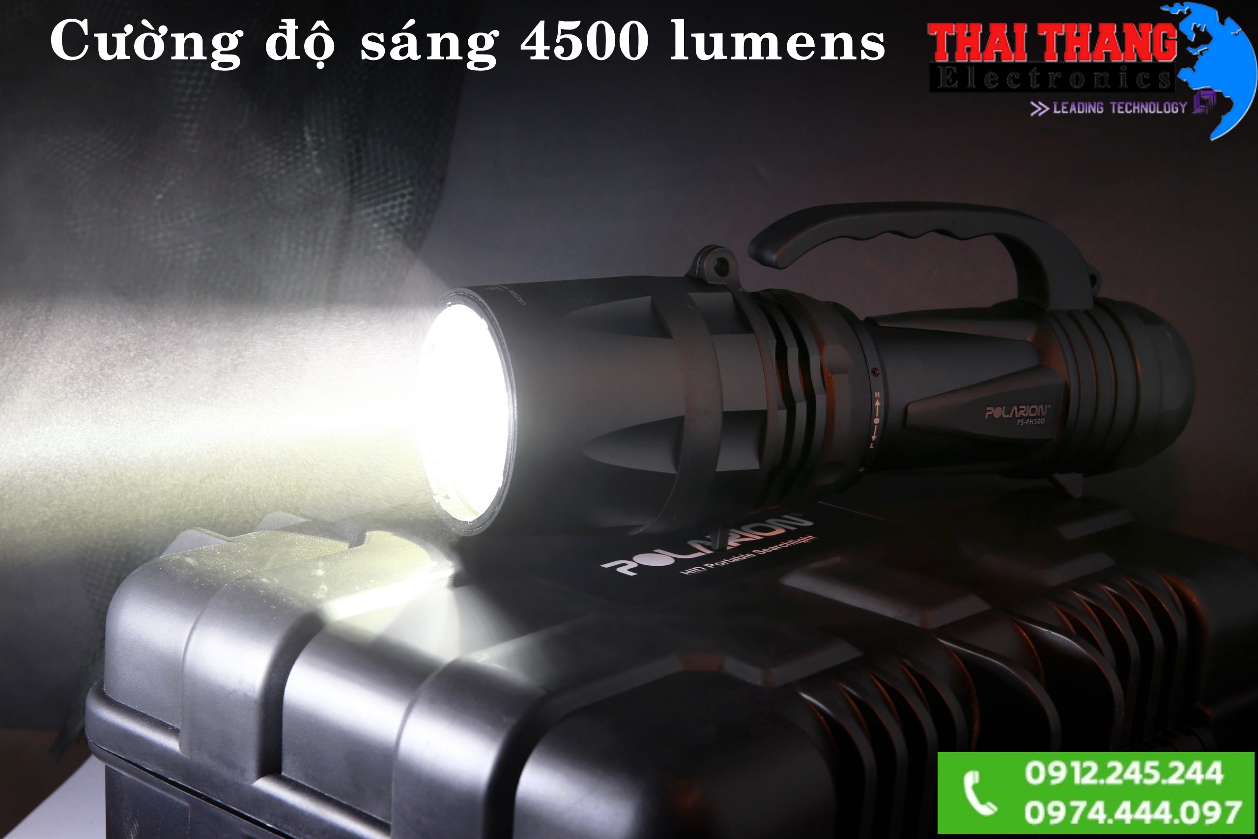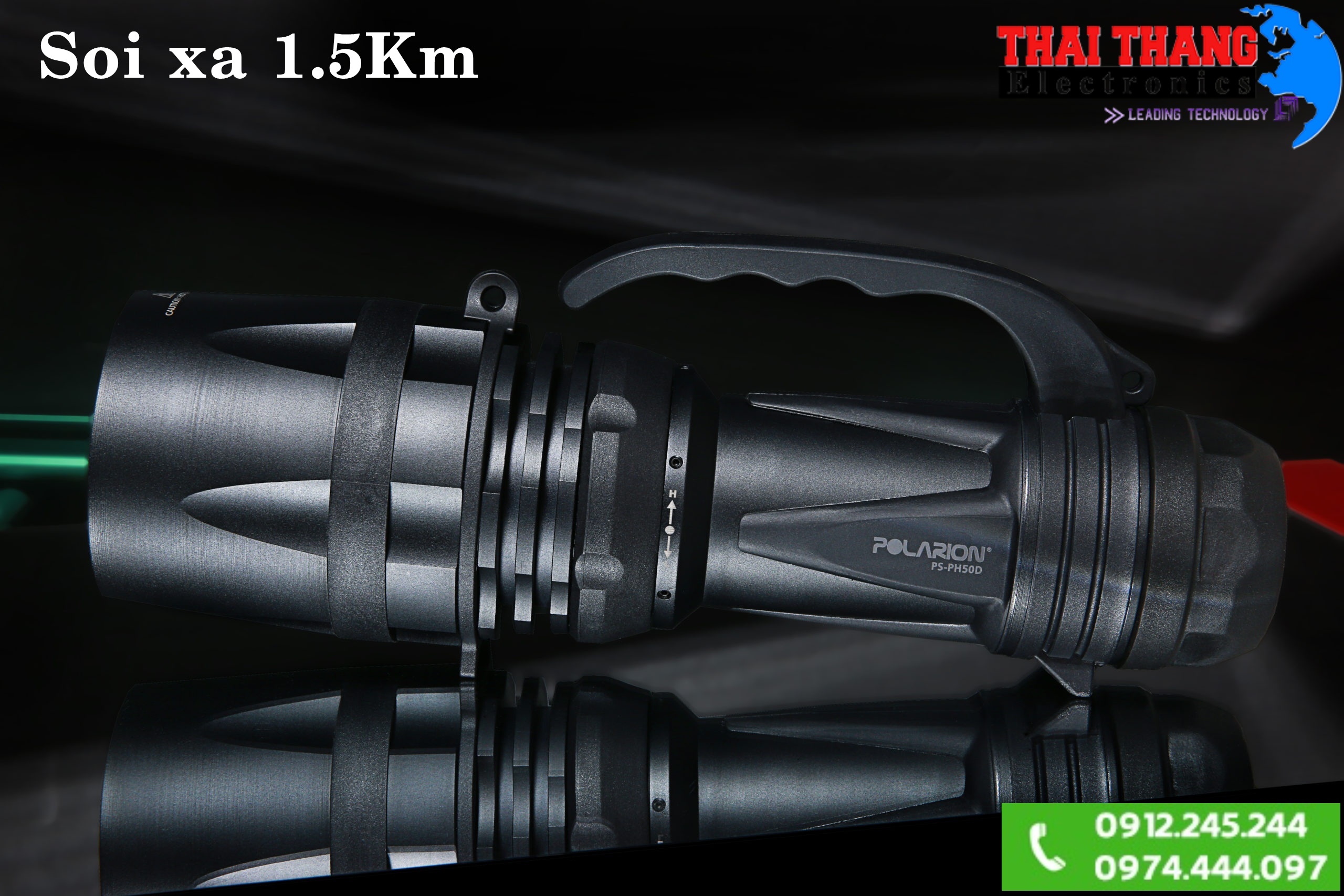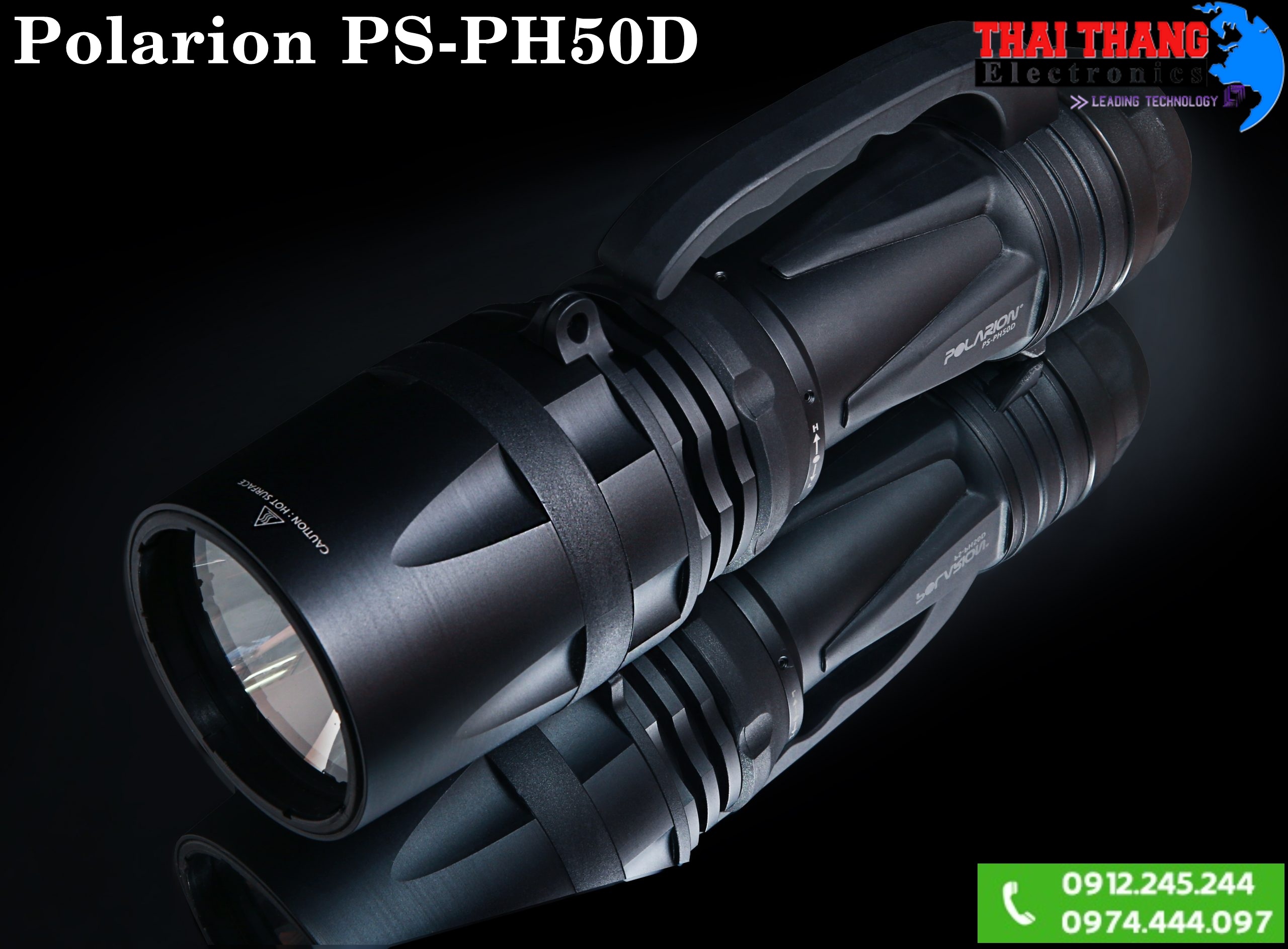 Đèn pha cầm tay siêu sáng Polarion PS-PH50D trang bị bóng Xenon HID 50W cho cường độ sáng của đèn lên đến 4500 lumen khi ở chế độ sáng cao nhất, đèn sẽ đạt 2800 lumen, công suất 30W khi ở chế độ sáng thấp. Đèn có khoảng cách chiếu xa lên đến 1.5Km nhờ vào dãy nhiệt màu 4300K và chóa đèn được thiết kết nhẵn và sâu. Tương tự như các dòng đèn pin cao cấp của Mỹ hoặc Đức, PS-PH50D cũng sử dụng chất liệu hợp kim nhôm cao cấp T6 6061 độ bền cao, có thể chịu các tác động mạnh như va đập, rơi rớt. Với chất liệu này cũng cho đèn trọng lượng nhẹ, thoải mái khi sử dụng, lớp ngoài của đèn được mạ nhôm Anidized chống ăn mòn hoặc oxy hóa. Tay cầm cũng được thiết kế cho đèn giúp người dùng dễ dàng cầm nắm, ngoài ra trên thân đèn được tiện các rãnh CNC có tính năng tản nhiệt, giúp đèn có thể sử dụng trong thời gian dài mà không bị nóng.