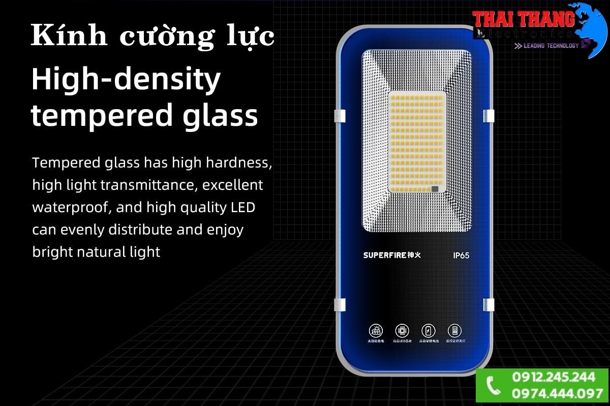 Đèn đường năng lượng mặt trời Supfire FF5-A có dung lượng pin là 5000mAh cho thời gian hoạt động tối đa của đèn là 12 giờ, công nghệ cấp nguồn xung PWM đảm bảo đèn hoạt động tuyệt đối ngay cả trong môi trường thiếu sáng. Pin năng lượng mặt trời sẽ tự động sạc để sử dụng vào ban đêm và xả pin vào ban ngày để đảm bảo tuổi thọ cho sản phẩm. Chất liệu đèn làm bằng hợp kim nhôm siêu bền có thể chịu được các tác động mạnh, tất cả sẽ được gắn trên bộ khung vô cùng chắc chắn, mặt kính cường lực được tráng các lớp truyền sáng, đồng thời bảo vệ đèn khỏi các tác động mạnh.
