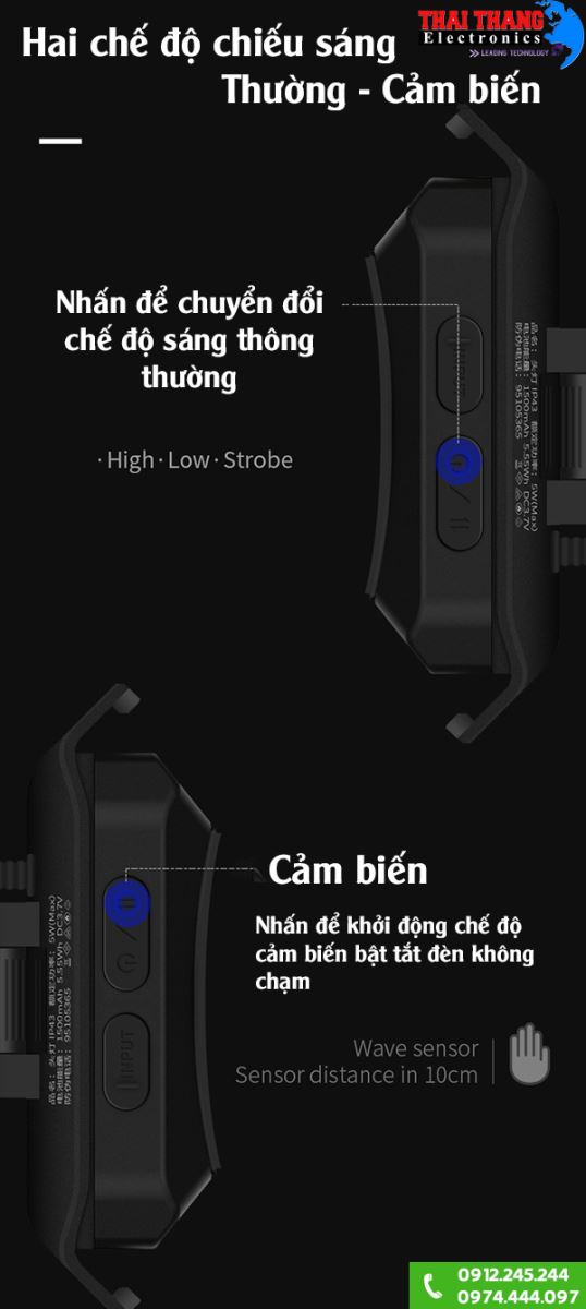 Chế độ chiếu sáng: Mạnh, Yếu, Nhấp nháy