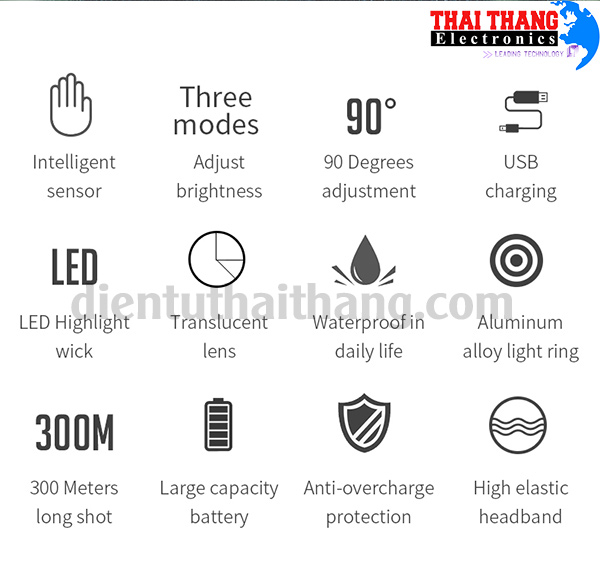 Loại bóng: XML-T6 LED Công suất: 900 lumen Chế độ sáng: 5 chế độ: mạnh nhất, trung bình, thấp, chớp, cấp cứu SOS. Khoảng xoi xa: 100-200 mét, IP67 chống thấm nước Kích thước: 160mm chiều dài,đường kính 45mm, 27mm Trọn gói bao gồm: đèn pin + pin + sạc + hộp