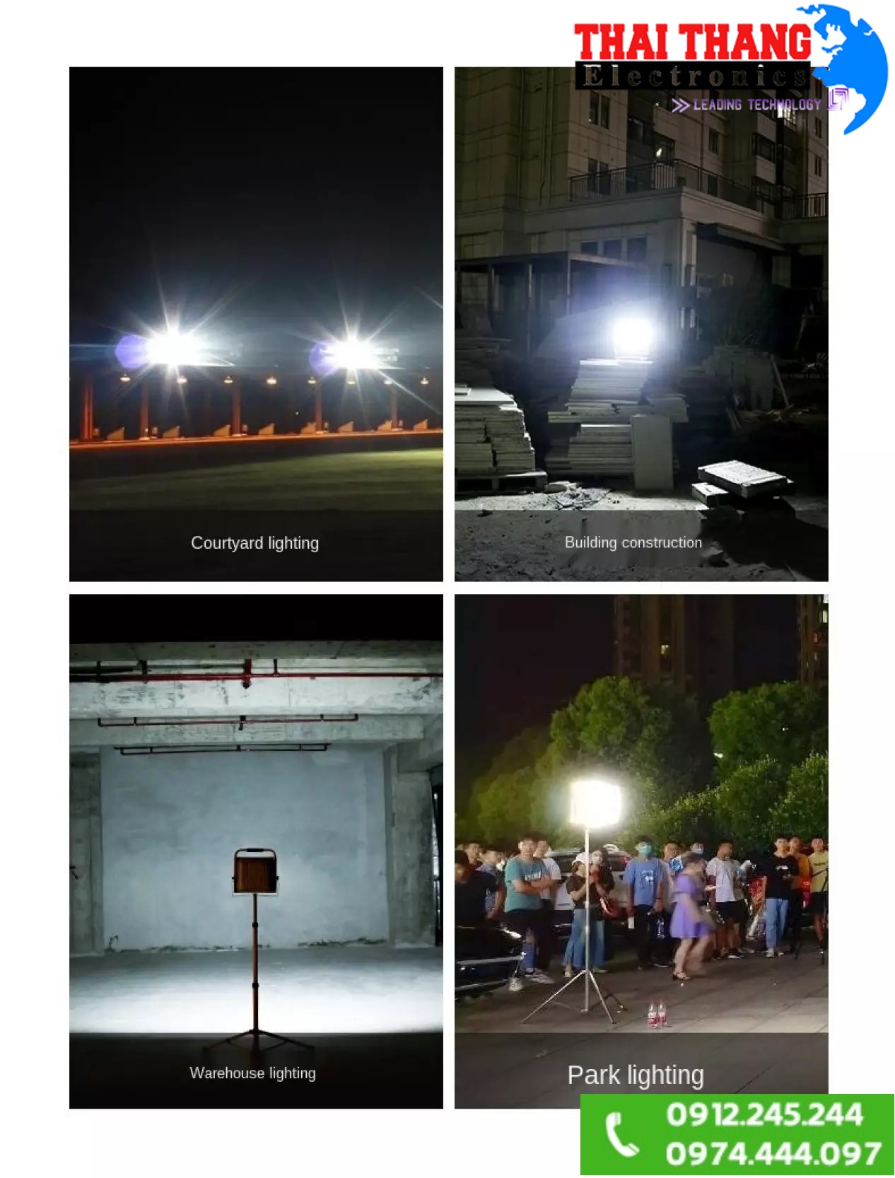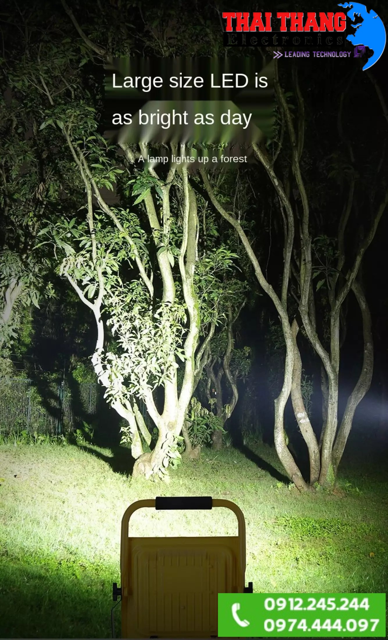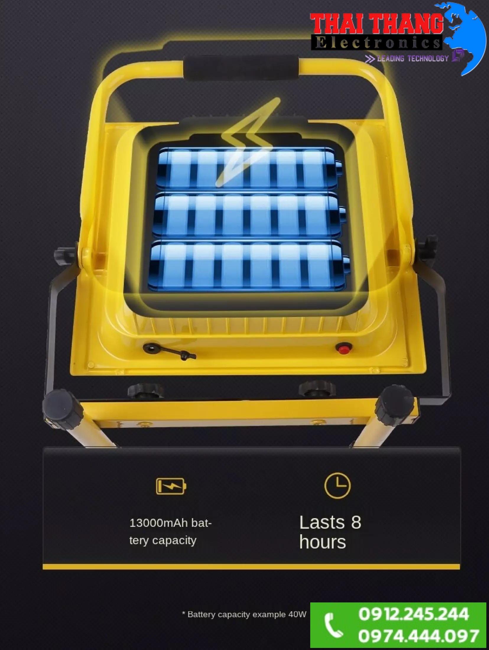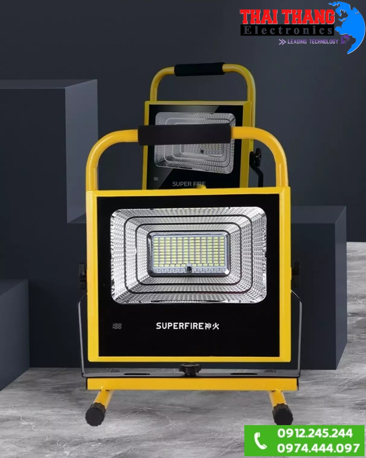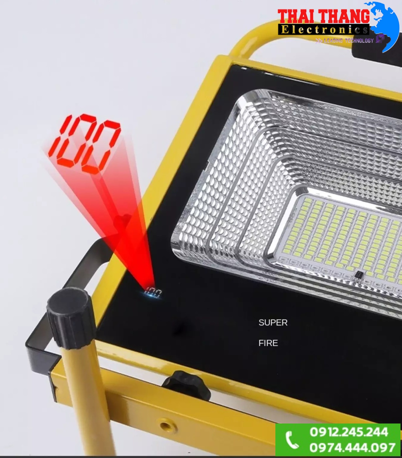 Đèn pin cắm trại siêu sáng 100W FS1-H trang bị 7 pin 18650 dung lượng 16100mAh cho thời gian hoạt động lên đến 8 giờ, màn hình hiển thị thời gian chiếu sáng cũng được thiết kế trên đèn. Đèn sử dụng chất liệu hợp kim nhôm trọng lượng nhẹ, tản nhiệt tốt và độ bền cao. Đèn đạt chuẩn chống nước IP54 giúp đèn có thể hoạt động tốt khi gặp thời tiết mưa gió.