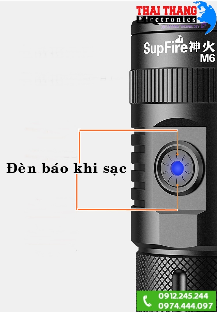 Đèn pin chính hãng Supfire M6 phiên bản 2021 sử dụng bóng led P50 cho cường độ sáng lên đến 3000 lumens, khoảng cách soi của đèn đạt 300m trong đêm tối nhờ vào thiết kế chóa đèn được mạ nhôm bóng. Đèn có tất cả 5 chế độ sáng như mạnh, vừa, nhấp nháy, SOS phù hợp cho nhiều mục đích chiếu sáng khác nhau. Giống như các loại đèn của Đức hoặc Mỹ, Supfire M6 cũng sử dụng chất liệu hợp kim nhôm hàng cao cấp cho đèn có trọng lượng nhẹ, độ bền cao, có thể chịu các tác động như va đập hoặc rơi rớt. Lớp vỏ bên ngoài được phủ lớp anodized chống ăn mòn hoặc oxy hóa. Trên thân đèn được tiện CNC các khe tản nhiệt giúp đèn hoạt động trong thời gian dài mà không bị nóng. Đặc biệt M6 version 2021 được tích hợp thêm cổng USB giúp sạc ngược lại cho các thiết bị di động. Sản phẩm đạt tiêu chuẩn chống nước IP45 giúp người dùng an tâm khi sử dụng trong điều kiện thời tiết khắc nghiệt.