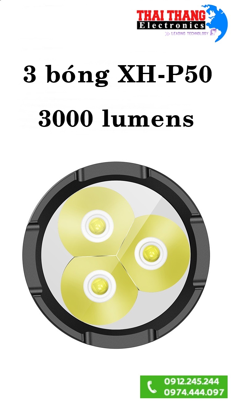 - Sử dụng nguồn sáng là bóng led P50 siêu sáng