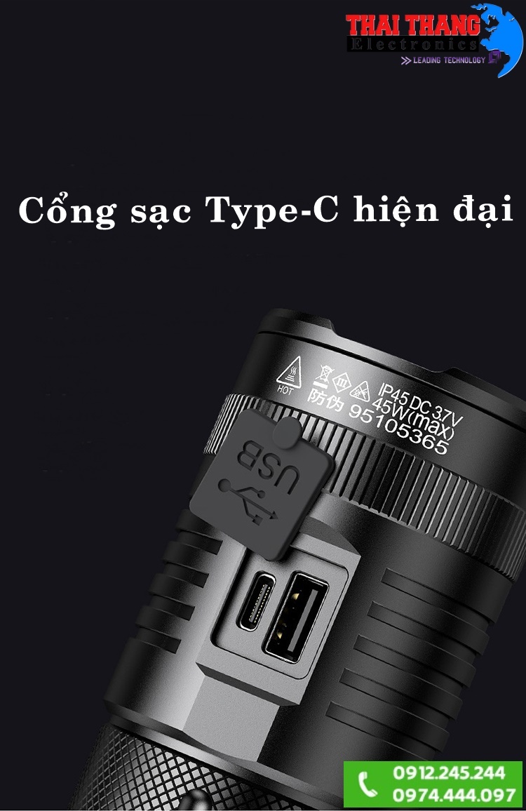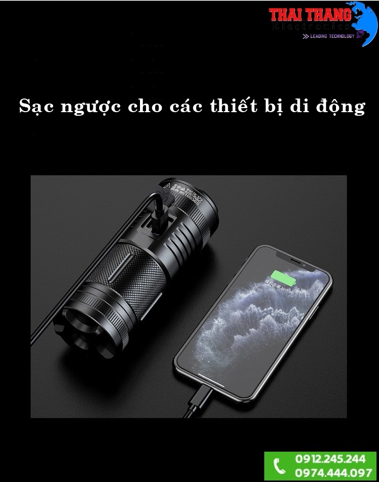 + sạc đèn pin sử dụng chip thông minh giúp ổn định điện áp và tự ngắt khi đầy pin.