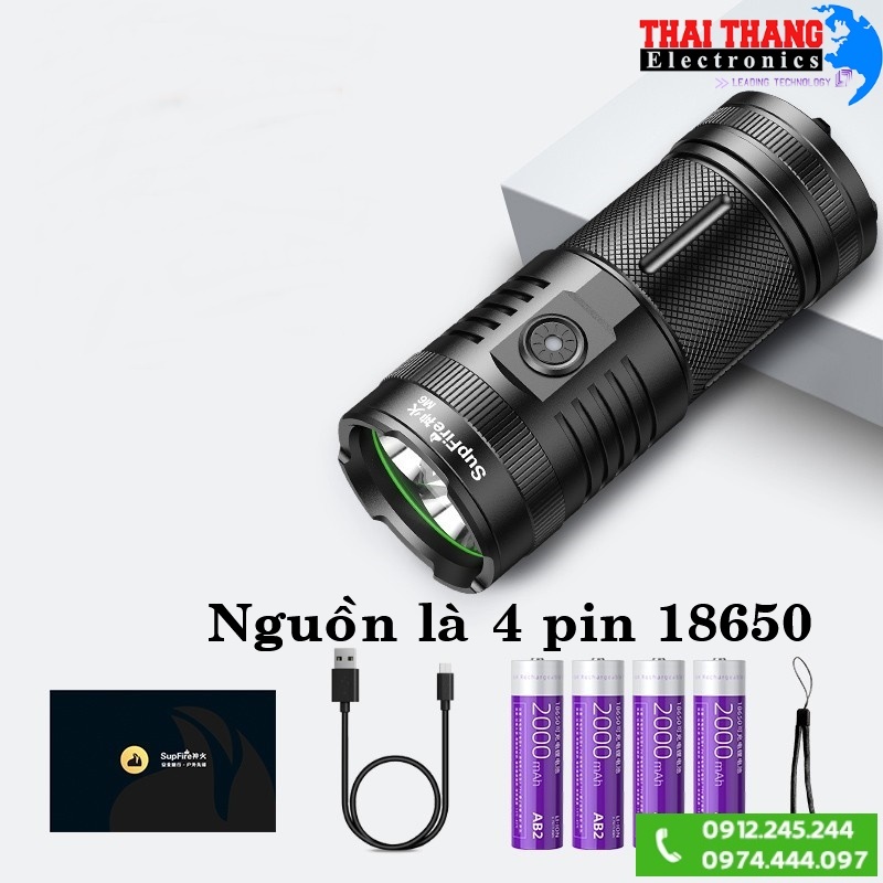 - ĐÈN PIN SUPFIRE X8-T6 sử dụng công nghệ bóng led CREE- XMLT6 cực sáng tuổi thọ cao siêu bền công nghệ bóng mới nhất của USA.