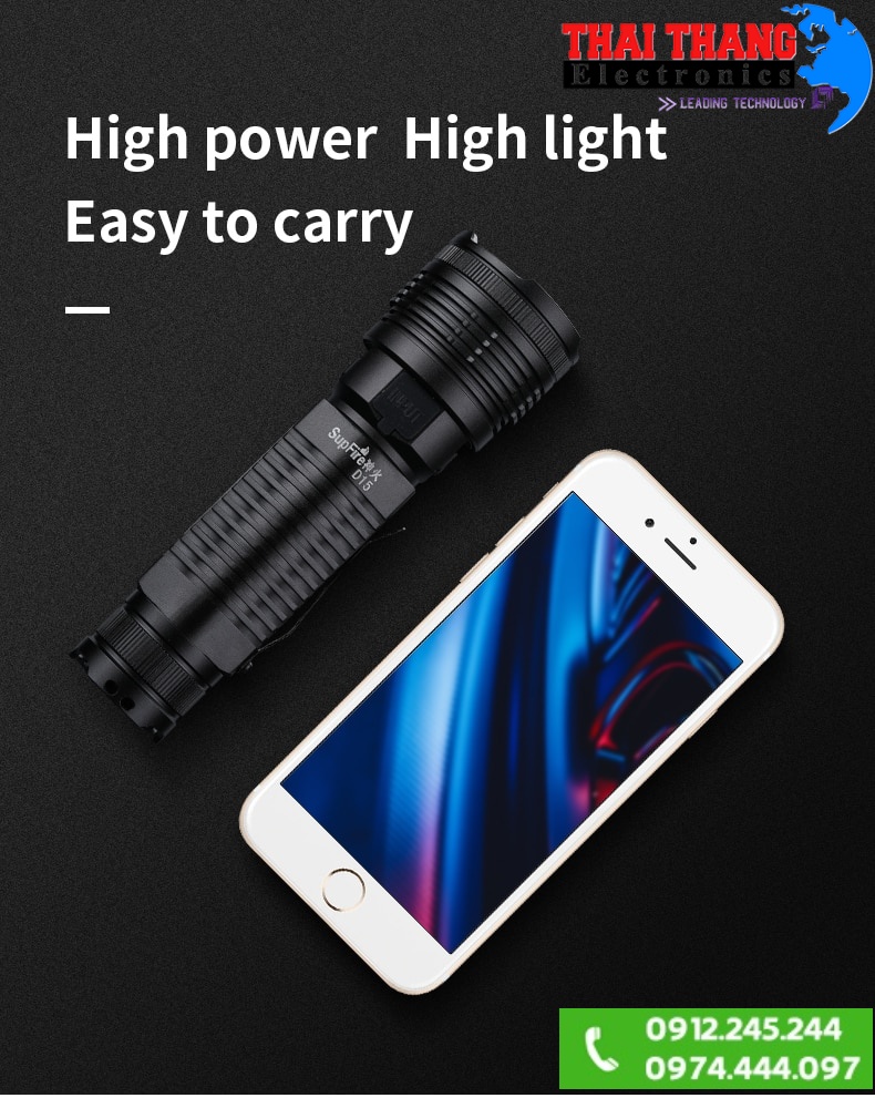 - ĐÈN PIN SUPFIRE L1 siêu sáng,với ánh sáng cực mạnh của 5 bóng đèn led cree xmlt công nghệ mới nhất của USA.