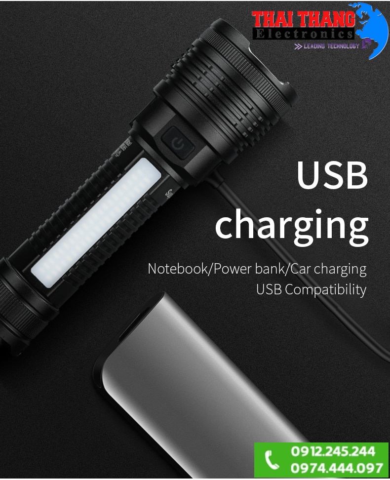 + sạc đèn pin sử dụng chip thông minh giúp ổn định điện áp và tự ngắt khi đầy pin.