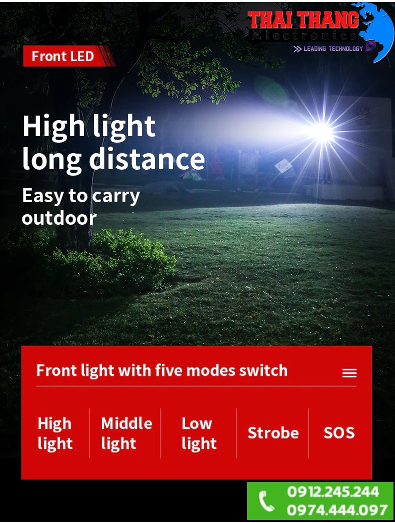 - Đèn có 5 chế độ chiếu sáng khác nhau đối với led chính