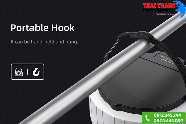 Đèn pin bán hàng đêm siêu sáng Supfire T25 trang bị nguồn là pin sạc dung lượng 2400mAh cho thời gian hoạt động lâu dài. Đèn có thể dễ dàng treo ở vị trí mong muốn như lều trại hoặc nơi làm việc thông qua móc treo.