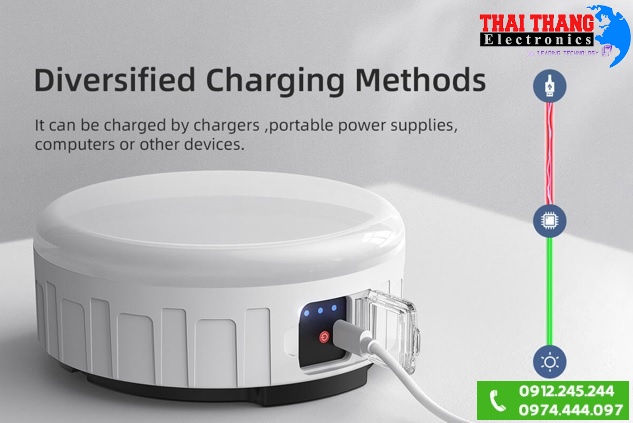 + sạc đèn pin sử dụng chip thông minh giúp ổn định điện áp và tự ngắt khi đầy pin.