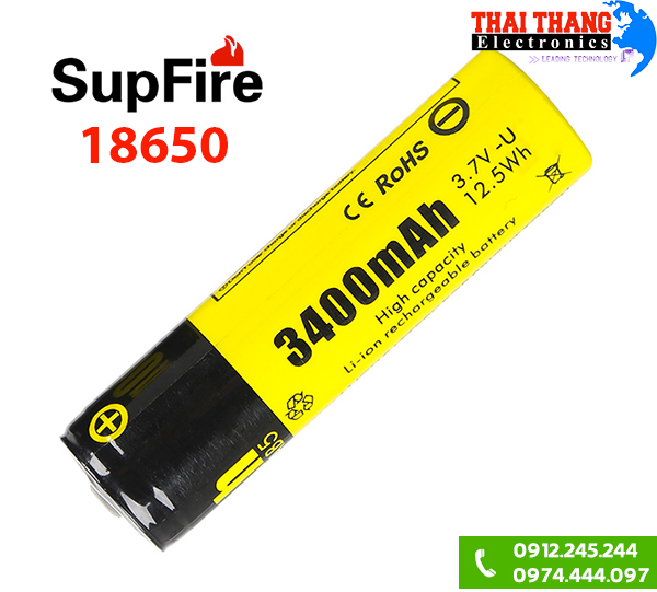 Pin sạc Supfire 18650 3400mAh có mức điện áp từ 3.7 đến 4.2V DC và đặc biệt có mạch bảo vệ pin chống lại quá tải hay điện áp thấp. Pin sạc 18650 Supfire 3400mAh thích hợp cho đèn pin siêu sáng, các loại đồ điện tử hay sử dụng làm pin laptop giúp kéo dài thời gian sử dụng cho thiết bị.