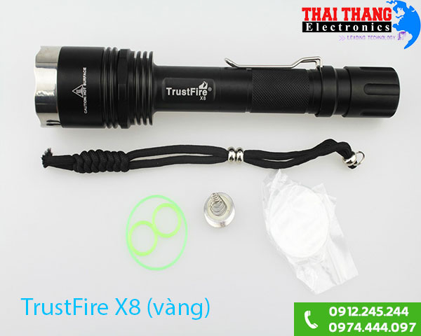 Đèn pin Trustfire TR-X8 ánh sáng vàngcó kích thước nhỏ gọn, trọng lượng nhẹ, độ bền cao. Thích hợp sử dụng cho chiếu sáng cá nhân, tuần tra, săn bắn,…