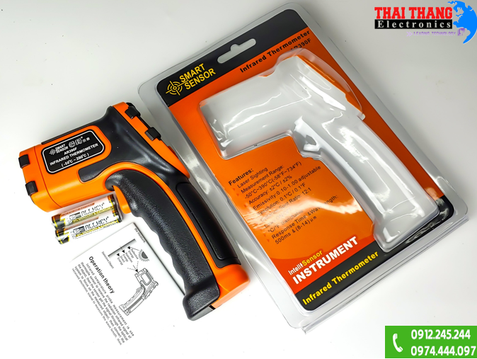Máy đo nhiệt độ chính hãng Smartsensor AR390F được sản xuất trên dây chuyền công nghệ hiện đại, máy sử dụng bước sóng hồng ngoại và laser định hướng để xác định điểm đo. Máy có thể đo được nhiệt độ trong khoảng từ -50°C~390 °C với sai số rất nhỏ chỉ ± 2°C ( nếu -50°C~0°C), ± 1.5°C ( nếu 0~100°C), ± 2% ( nếu >100°C). Máy có đơn vị đo là °C và có thể chuyển đổi đơn vị đo sang °F, máy có màn hình LCD  nhỏ giúp hiển thị chi tiết kết quả đo