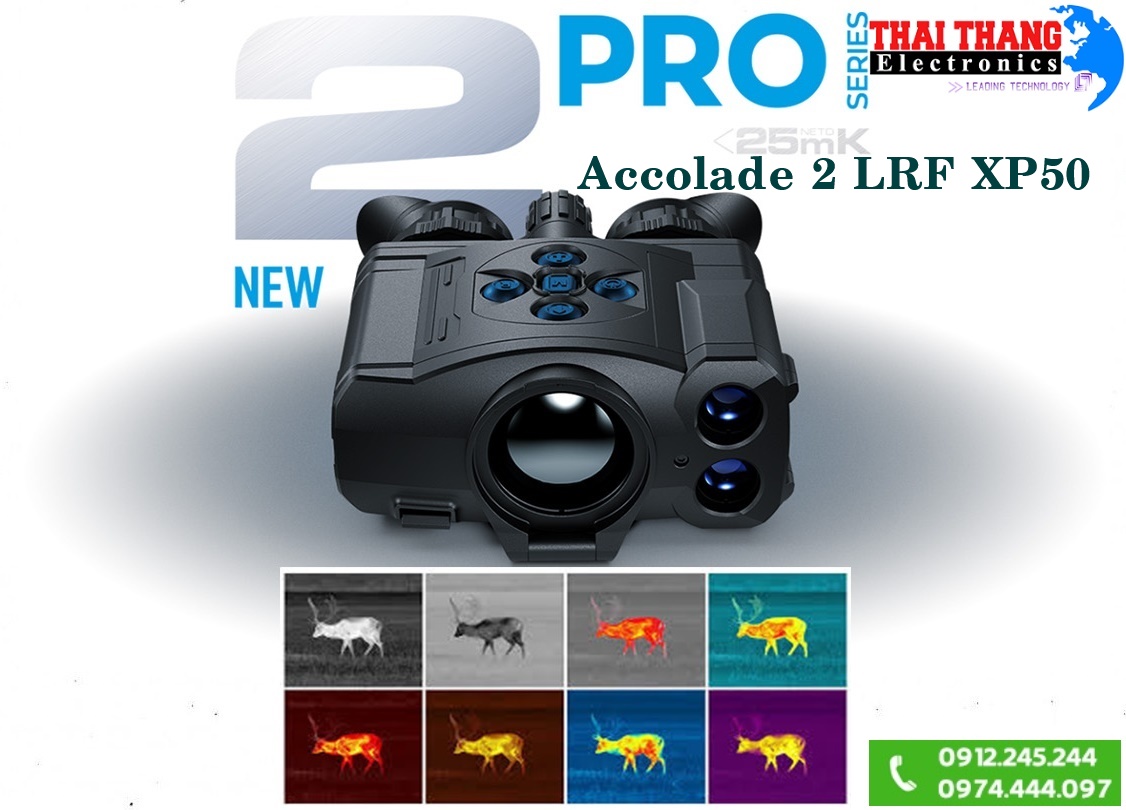Ống nhòm nhiệt siêu nét Pulsar Accolade 2 LRF XP50 sử dụng nguồn là pin IPS14 cho thời gian hoạt động lên đến 9 giờ. Ngoài ra sản phẩm được trang bị thêm tính năng đo khoảng cách với bước sóng laser đạt 905nm cho phạm vi đo đến 1000m. Đặc biệt ống nhòm hỗ trợ đến 8 bảng màu White Hot cổ điển linh hoạt trong việc quan sát, Black Hot phát hiện động vật hoang dã vào ban đêm, Red Monochrome ngăn chặn ánh sáng ngược sáng thoát ra khỏi thị kính, Sepia cải thiện khả năng quan sát mục tiêu ở xa. Trong khi Red Hot, Rainbow và Ultramarine nâng cao sự khác biệt về nhiệt độ giữa các vật thể khác nhau. Cuối cùng là Violet giúp xác định đối tượng nhanh hơn.