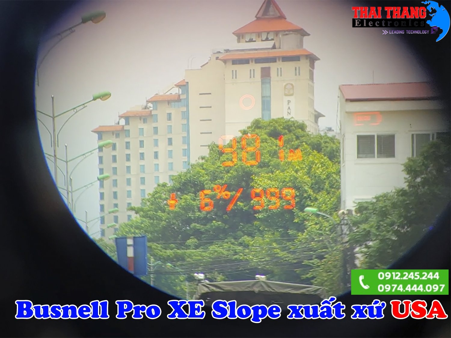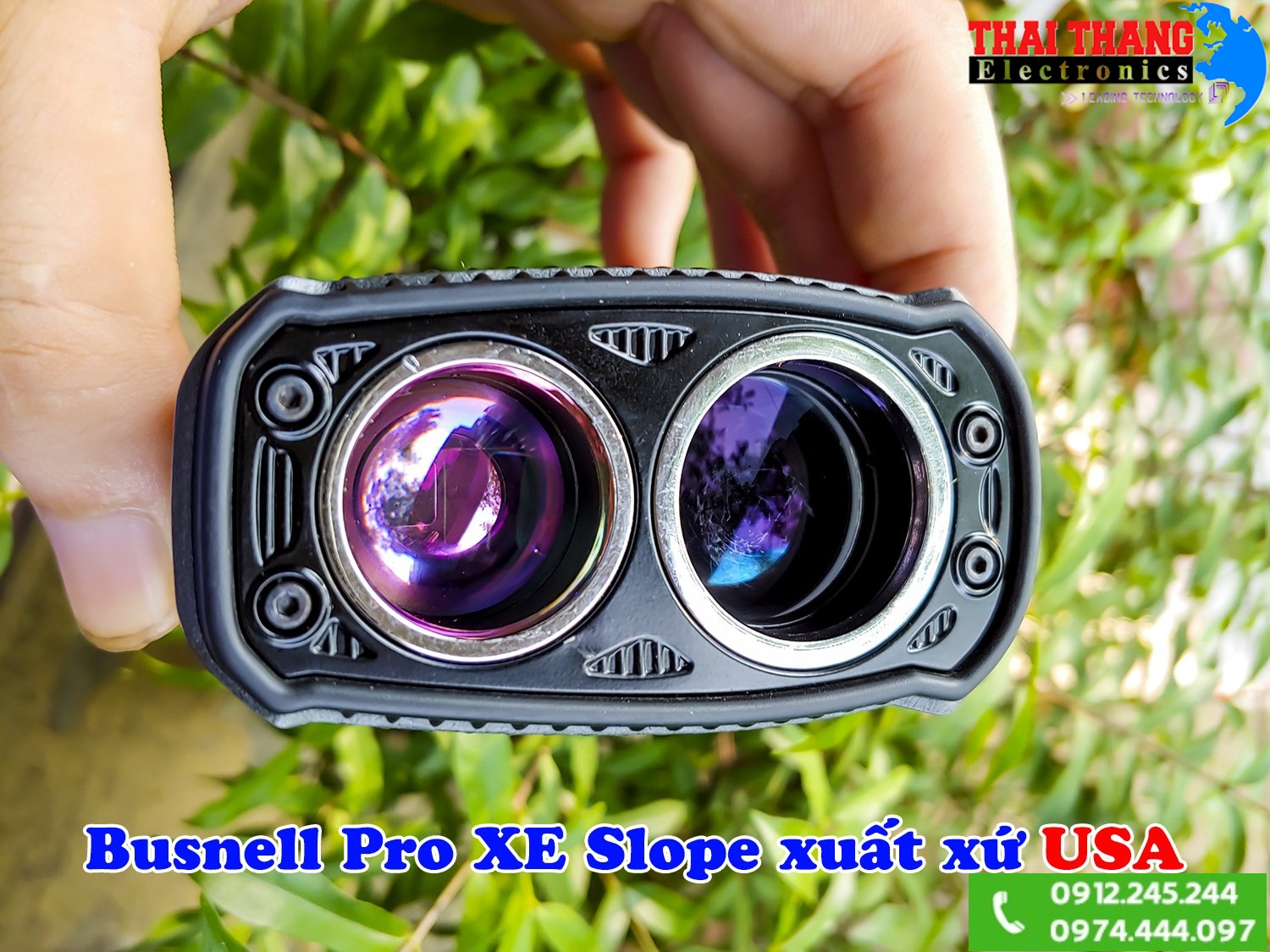 Ống nhòm chính hãng thanh lý Bushnell Pro XE có độ phóng đại cố định 7x cho khoảng cách quan sát xa mà vẫn cho hình ảnh sắc nét nhất, đường kính ống nhòm 25mm cho khoảng nhìn rộng, quan sát được bao quát. Khoảng cách đo của ống nhòm từ 5 đến 1300yards, khoảng cách bắt cờ chính xác là 500yards hoàn toàn vượt trội so với các dòng đo khoảng cách chơi golf. Đặc biệt ống nhòm trang bị tính năng Slope độc quyền giúp đo và bù gốc tối đa trong sân Golf, chế độ này có thể bật tắt chỉ bằng 1 nút gạt trên thân ống nhòm. Các lăng kính bên trong ống nhòm đều được tráng phủ quang học đa lớp nhằm tăng độ nét và độ tương phản cho hình ảnh cho hình ảnh, đồng thời giúp ống nhòm có thể quan sát tốt trong điều kiện ánh sáng yếu.