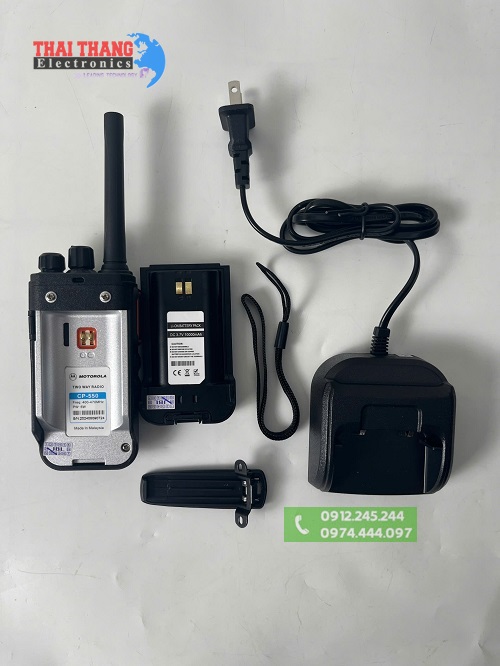 Máy bộ đàm cầm tay Motorola CP550 Là dòng sản phẩm có phạm vi liên lạc xa, âm thanh to rõ, đáp ứng tốt các tiêu chuẩn về độ bền kỹ thuật cũng như độ bảo mật,thiết kế gọn nhẹ, tính cơ động cao giúp sản phẩm phù hợp cho nhiều công việc như an ninh, tuần tra, bảo vệ, cứu hộ, hàng hải, nhà hàng, khách sạn,….
