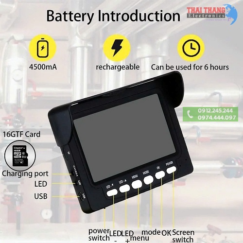 Camera nội soi công nghiệp, Camera nội soi đường ống đặc biệt này hỗ trợ camera độ phân giải cao 720x576px ... kèm theo là 30 bóng led trắng 960 TVL giúp camera sử dụng ở trong tối hoàn toàn rất tốt ... Bộ camera nội soi công nghiệp này sử dụng bộ xử lý trung tâm với màn hình rộng lên đến 15 inch, sử dụng bàn phím nhập liệu giống bàn phím máy tính; Có hỗ trợ ghi hình, video thông qua thẻ nhớ SD, hỗ trợ ghi tiếng, xuất âm thanh qua jack tai nghe,... Dây cáp siêu dài lên tới 120m dây được làm bằng sợi ... |
