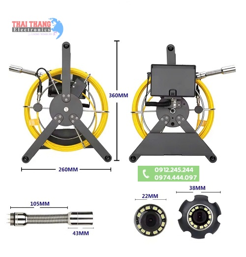 - CAMERA KIỂM TRA ĐƯỜNG ỐNG chuyên dùng để kiểm tra đường ống,cống ngầm,khe kẽ nứt rất nhỏ mà con người không thể vào được,với camera cực nét và đèn led siêu sáng cho hình ảnh rõ nét,trung thực với cuộn dây làm bằng sợi thủy tinh siêu bền bọc bên ngoài bọc nhựa cao cấp chống nước,chống va đập và chịu được mọi điều kiện môi trường khắc nghiệt.Đây là sản phẩm hiện đại và hoàn hảo Chuyên dụng dùng cho kỹ sư xây dựng,kỹ sư đường ống,nhân viên cứu hộ cứu nạn,các nhà địa chất.....