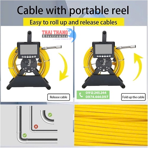Camera nội soi đường ống TTI CNS0786 Sử dụng cab tín hiệu chất liệu sợi quang chịu lực cao cấp,giúp truyền tín hiệu tốt, chịu lực kéo mạnh, độ co gập cao (lưu ý không quá 90°), chất liệu này còn chịu được ăn mòn hoặc va đập mạnh khi hoạt động trong môi trường khắc nhiệt,nguồn sử dụng pin dung lượng 4500mAh cho thời gian làm việc hiệu quả từ 2 đến 3h,trang bị trục trục xoay,kèm chân đế tiện dụng,dễ dàng thao tác thu gọn hoặc cầm nắm di chuyển mọi địa hình.