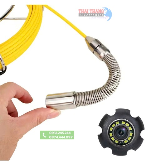 - Đầu camera có thể uốn cong theo hướng của đường ống
